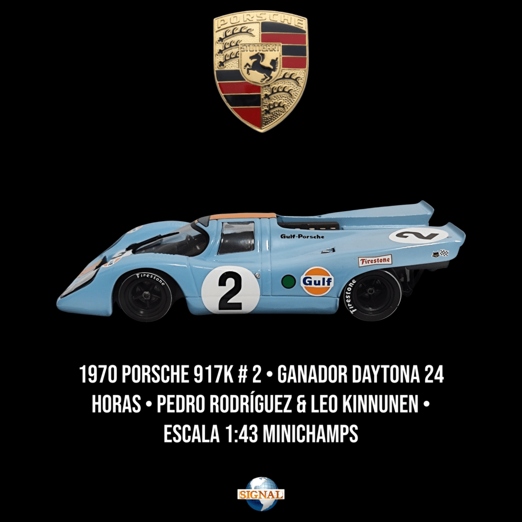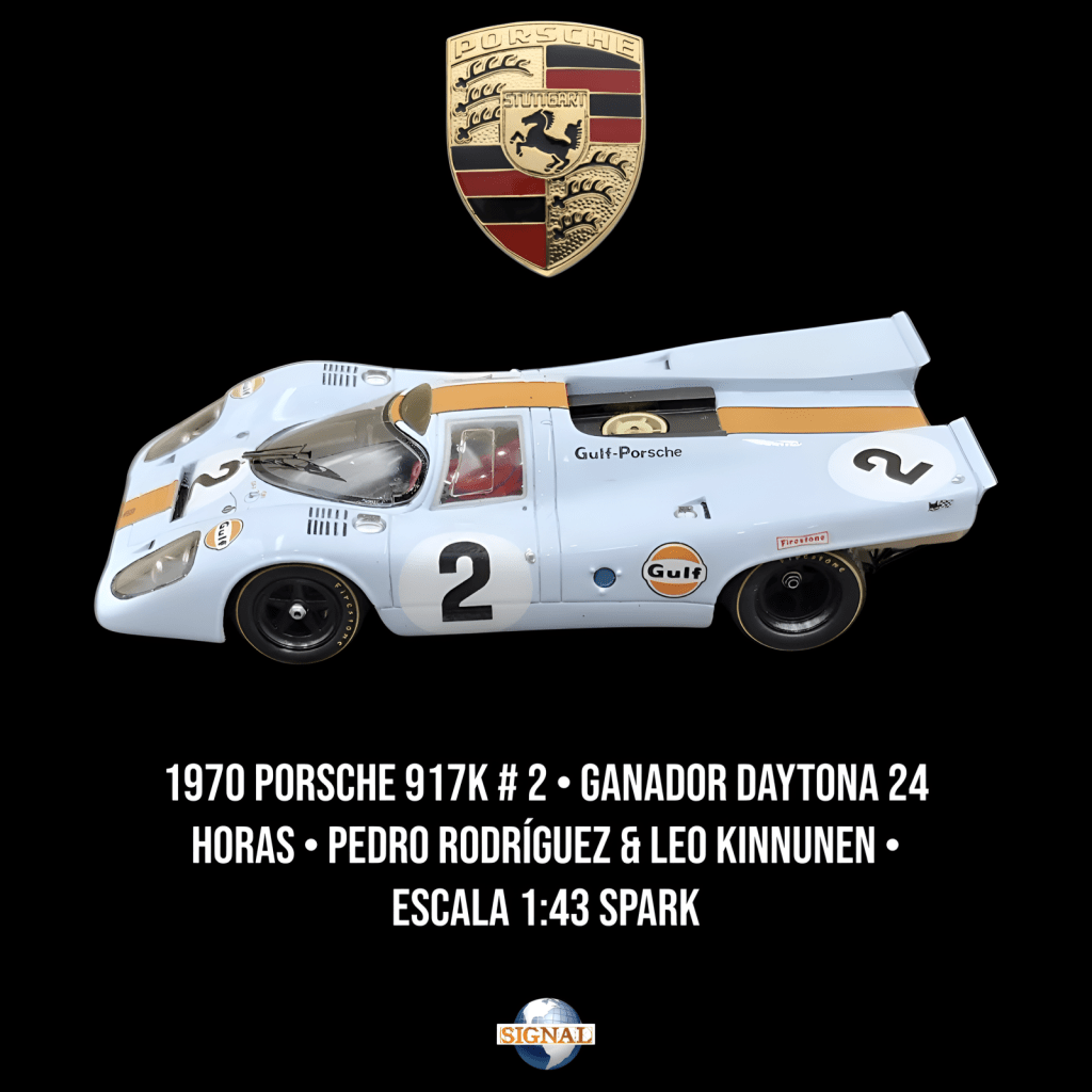 Porsche 917; En 1970, el Porsche 917, pilotado por Pedro Rodríguez y Jackie Oliver, alcanzó una victoria significativa en las 24 Horas de Daytona. Este logro resalta la habilidad de Porsche para crear vehículos de alto rendimiento que destacan tanto en carreras de resistencia como en circuitos más cortos. La destacada actuación del Porsche 917 en las 24 Horas de Daytona resalta su importancia en la historia del automovilismo y su atractivo como objeto de deseo para los entusiastas de los coches en miniatura.