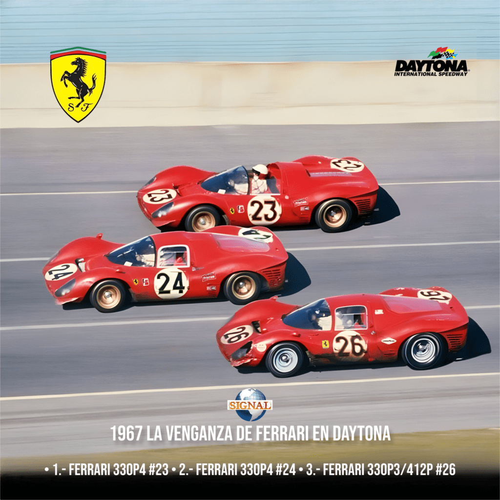 Y así fue como Ferrari se vengó de sus rivales, aunque en 1968 Porsche también logró imponerse con una victoria 1-2-3, convirtiéndose en la empresa dominante de constructores y motores en Daytona.