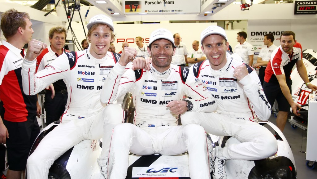 Porsche 919 Hybrid, Porsche Team: Brendon Hartley, Mark Webber, Timo Bernhard (l-r) Porsche Newsroom